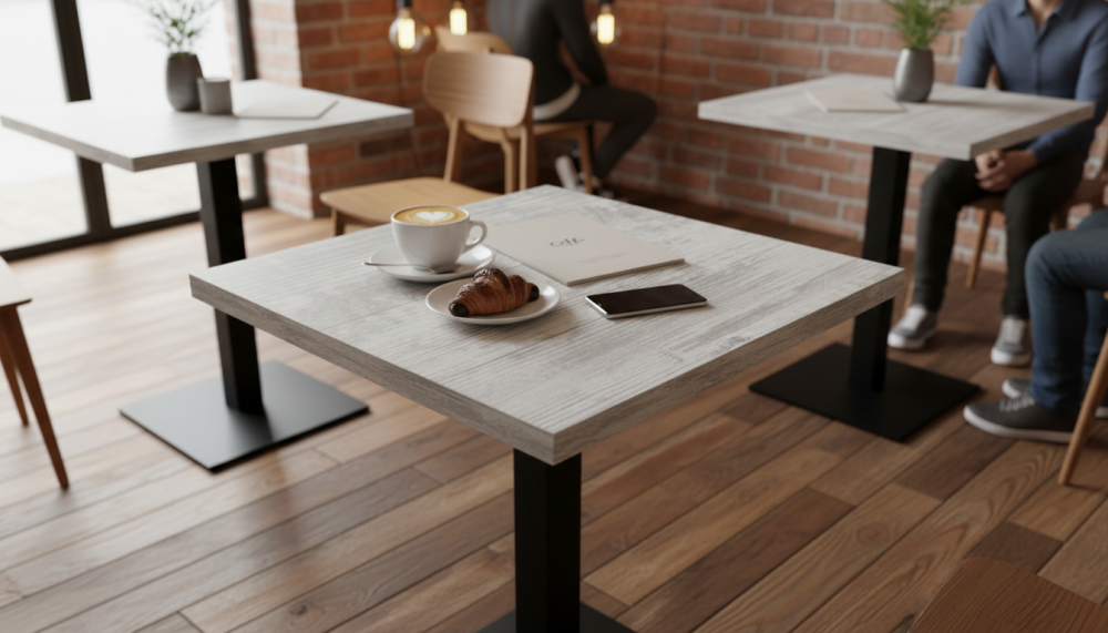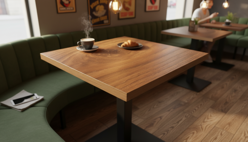 Квадратные, круглые, прямоугольные столешницы HPL. Это ламинат высокого давления. Покрытие МДФ изготавливаеся методом сухого прессования мелкой древесной стружки.